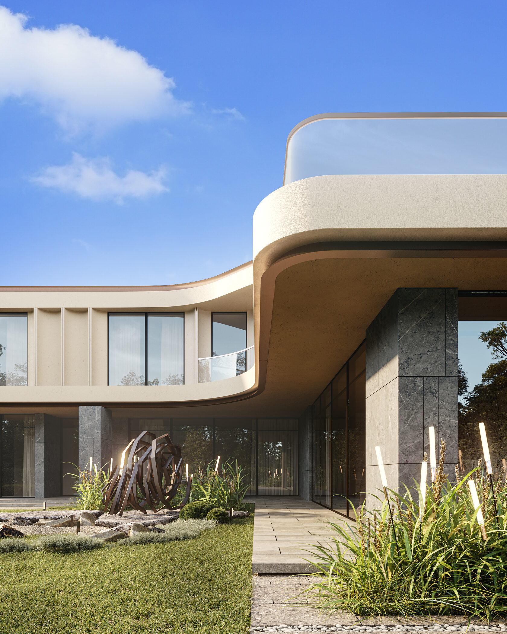 The second floor is completely at the disposal of the owners of the house — a master bedroom and three children's rooms, all rooms are accompanied by a separate dressing room and bathroom, the master bedroom has access to the terrace.